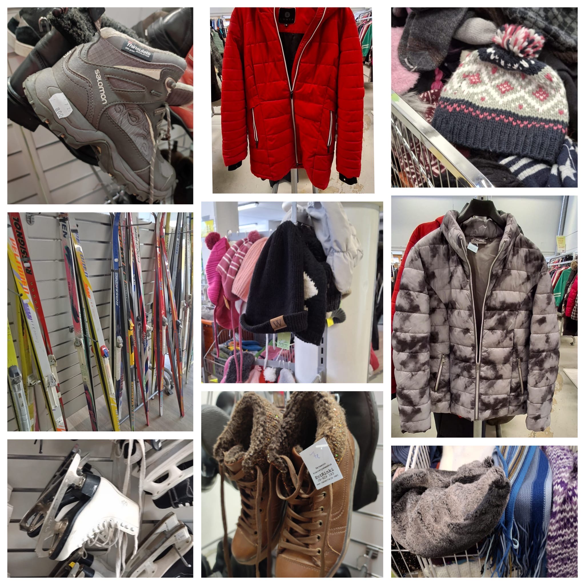 Talviurheiluvälineet, talvivaatteet (eli toppatakit ja toppahousut, paksut villapaidat), huivit, pipot ja vuorelliser talvikengät - 50%